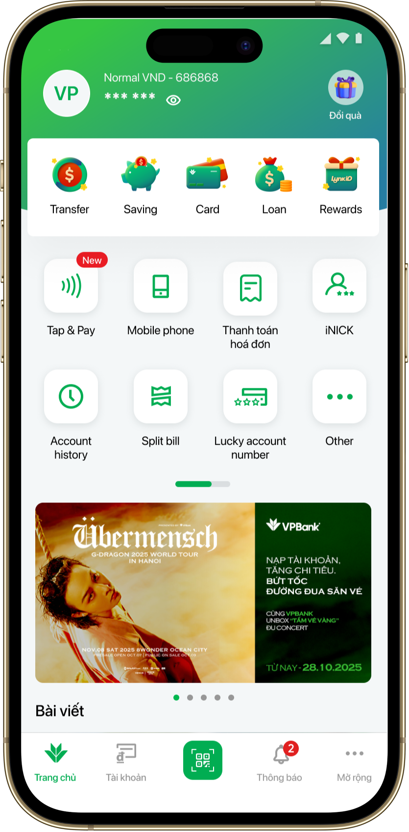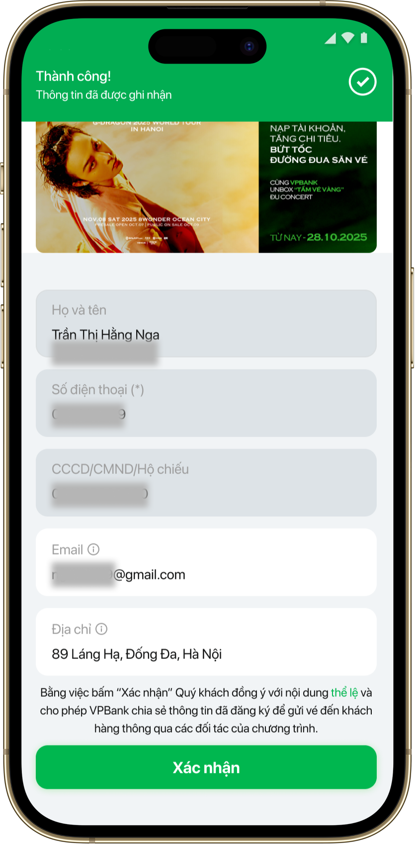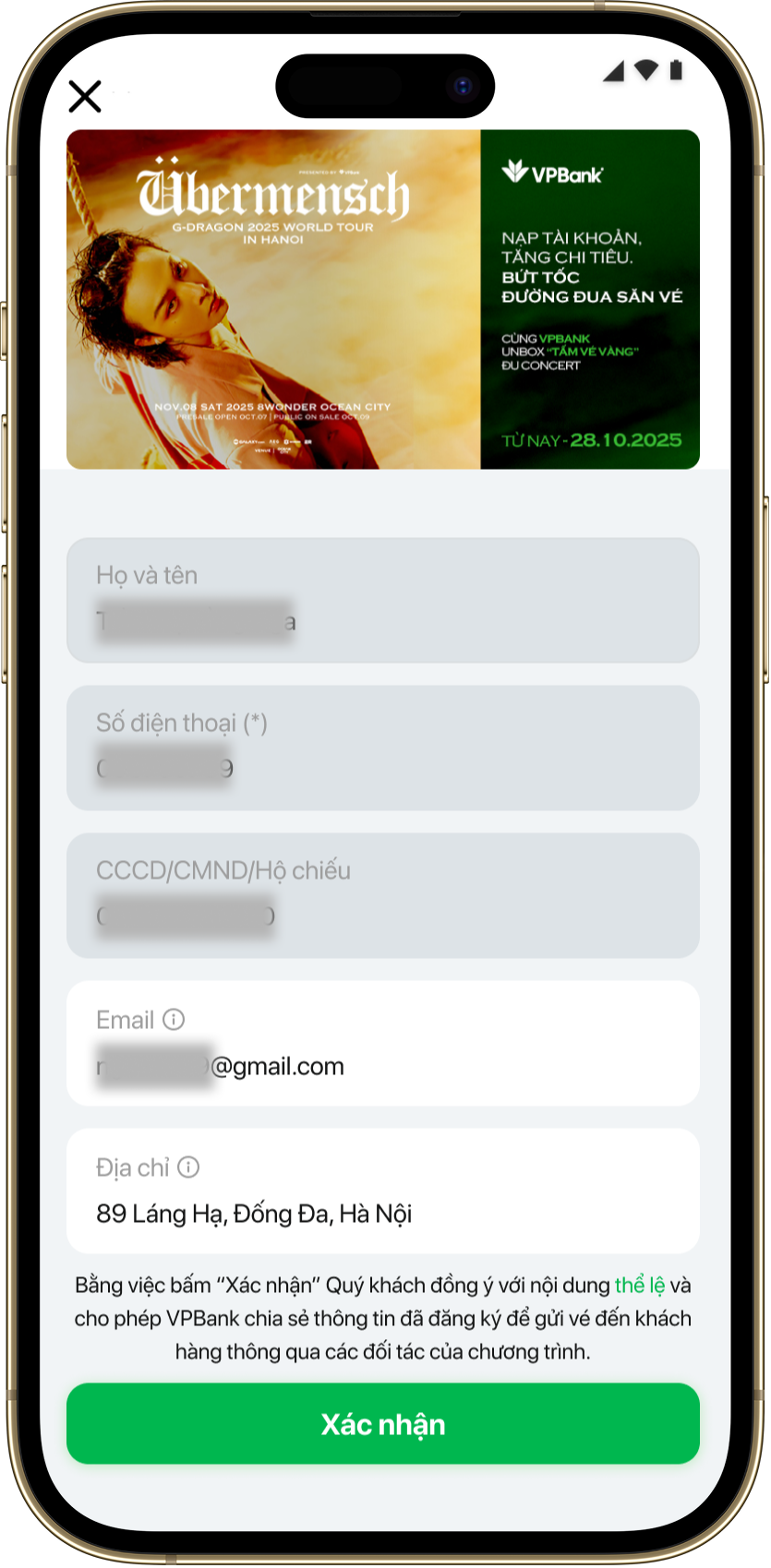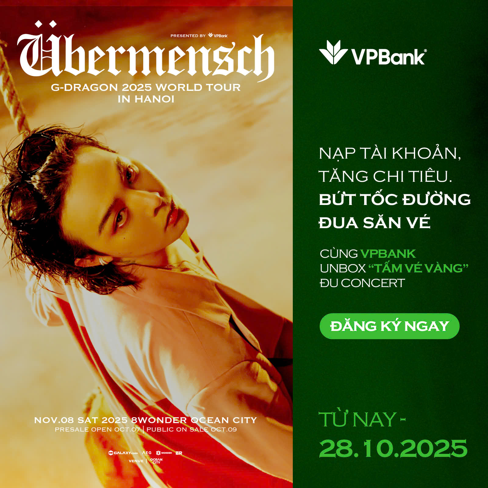 Tặng vé tham gia sự kiện âm nhạc G-DRAGON 2025 WORLD cho khách hàng đăng ký tham gia và thỏa mãn điều kiện chương trình.